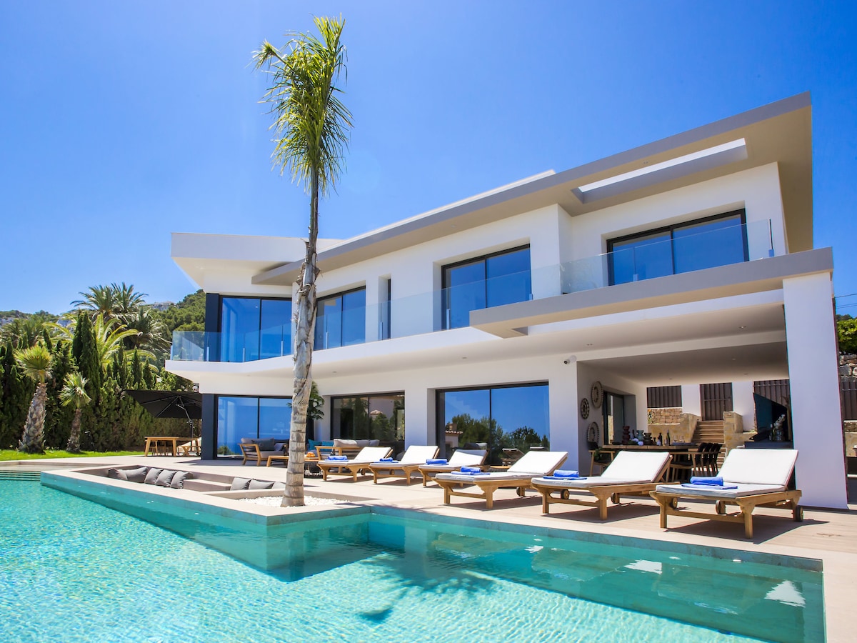 Villa de lujo estilo Ibiza, con piscina climatizada