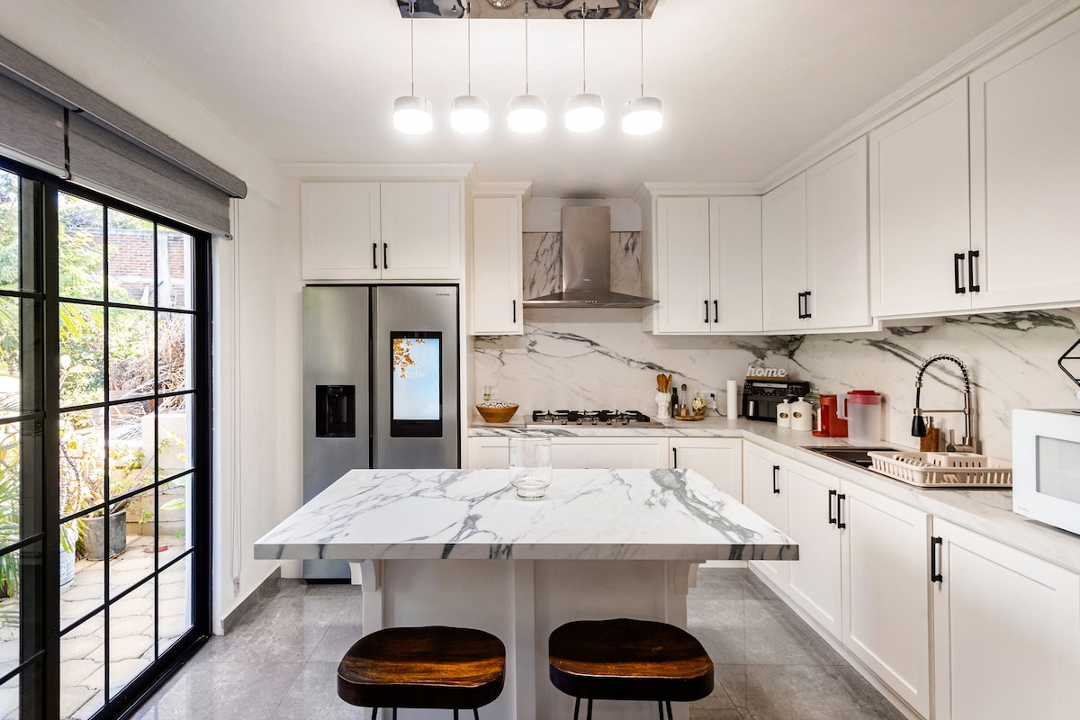 Enjoy a stylish experience at this centrally-located place. Close to San Jose downtown. 1.5 mil from el Ganzo. 3 min away from the main attractions. 4 blocks away from the ocean. This place is a true gem. 5 markets and food places all around. WE suggest a car as distances can be far at time. But to explore Cabo it’s better by car. NO PARKING space inside the property,but street parking it’s allow and safe.