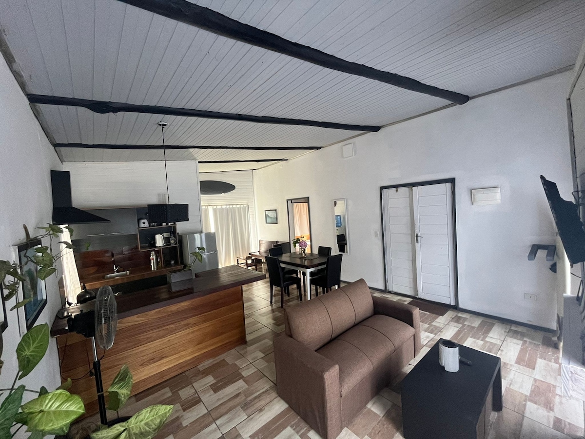 A sólo 7 cuadras de medialunas calentitas, la playa de La desembocadura y los restaurantes de la Ruta 10. Zona muy acogedora y tranquila para familias con niños y/o adolescentes , ya que la comodidad y tranquilidad de la casa se combina con la movida a escasas cuadras. La casa está equipada full con todas las comodidades, ambientes Amplios y luminosos. Zonas comunes integradas con espacio para toda la familia, o grupo de amigos. Parque con piscina y barbacoa. Disponible para alquiler invernal