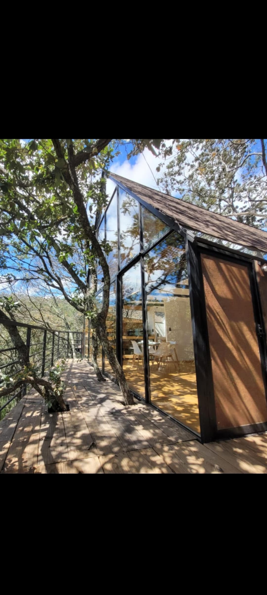 Cabaña elevada en las copas de los árboles que te brinda una vista espectacular al horizonte con los amaneceres más bellos y una vista del bosque con otra perspectiva desde arriba. Máxima tranquilidad con 30 mil m2 de bosque privado en el que puedes hacer senderismo, ciclismo o simplemente disfrutar de la naturaleza. Están construidas con materiales y vidrios térmicos, sus interiores con muebles y accesorios de alta calidad qué te ofrecen una estancia boutique y de relajación.