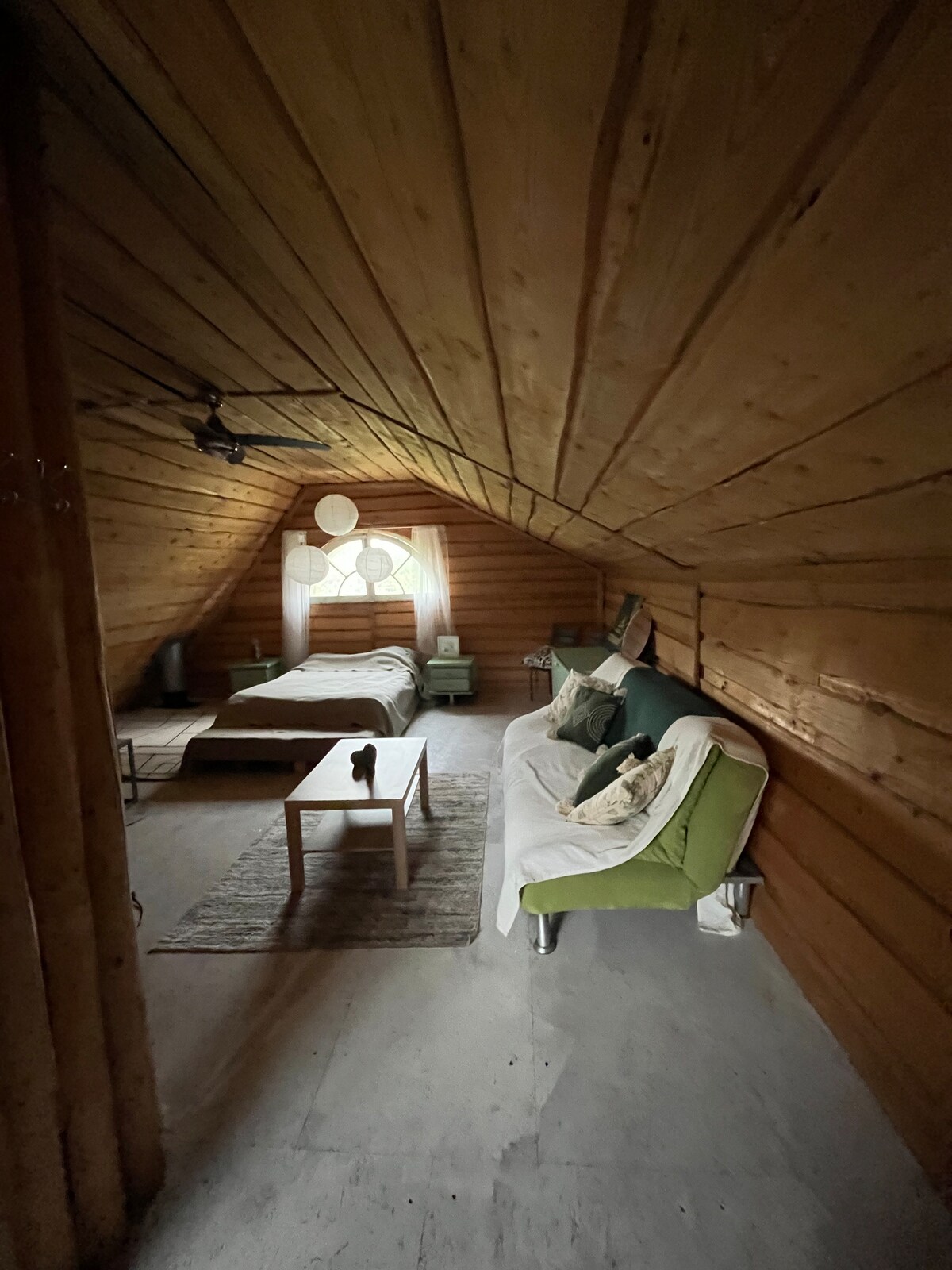 La casa se compone de dos casas de campo de seis plazas en dos plantas donde encontrarás dos camas dobles y cuatro camas individuales, dos sofás cama en las salas de estar, ropa de cama blanca limpia, toallas, dos baños privados exclusivamente para ti, dos salas de estar con chimeneas, TV y mini cocina pequeña incluidas en el precio. Por un cargo adicional, podemos tomar una sauna ubicada justo fuera del edificio.