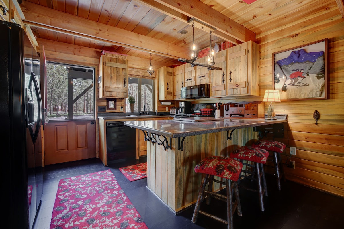 Acogedora cabaña de estilo alpino situada en un barrio tranquilo entre los pinos, a pocos pasos del río Deschutes. La cabaña Black Duck es un destino perfecto para todas las increíbles actividades de Oregón Central. A 10 minutos en coche de Sunriver Village, a 30 minutos en coche del monte Bachelor, a 30 minutos del centro de Bend, a 10 minutos a pie del río Deschutes, golf, pesca, senderismo, compras, ciclismo de montaña, todo a poca distancia en coche. Si buscas una experiencia rústica en una cabaña, ¡este es tu lugar ideal!
