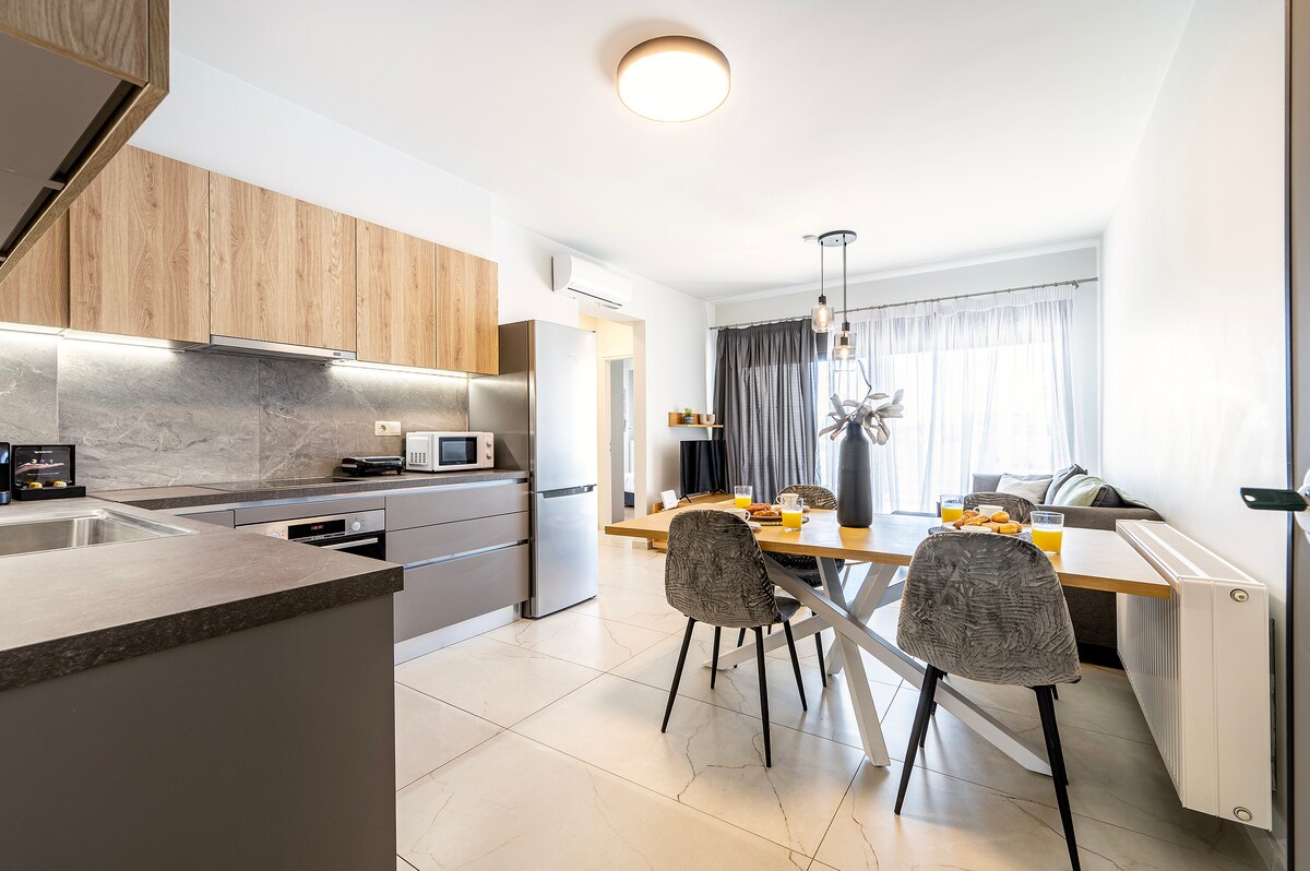El apartamento está situado en el centro del Pireo y junto al puerto. Metro, conexión al aeropuerto, transbordadores, tren, tren suburbano, estación de autobuses y tranvía, todo a 100 metros. ¡Ubicación céntrica! El apartamento en el que te vas a alojar es nuevo y está totalmente renovado con dormitorio, cocina, sala de estar de 69 metros cuadrados con altos estándares y diseñado por un excelente arquitecto. Ubicado en el cuarto piso. ¡Es cómodo y lujoso para que tu estancia sea inolvidable!