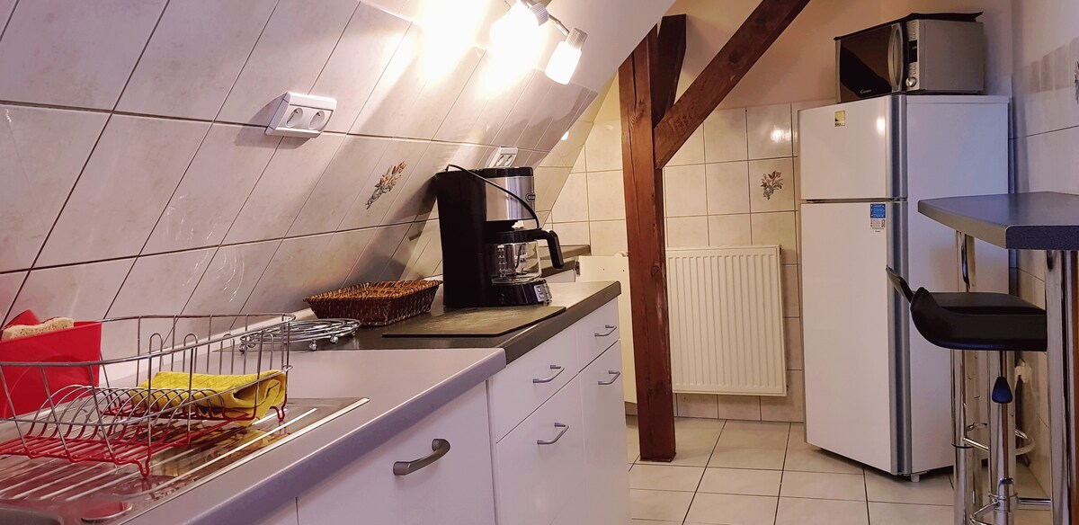 Situado en un pequeño pueblo en el centro de Alsacia, a 30 minutos de Estrasburgo y Colmar. Cerca de Europa Park, el nuevo museo de VideoJuegos, los mercados de Navidad, la ruta del vino, los mercados gourmet. El apartamento es de 80m2 y forma parte de una gran casa típica Alsaciana. Tiene su entrada privada y su terraza privada y tiene acceso al jardín. Posibilidad de acomodar hasta 6 personas. Perfecto para unas vacaciones tranquilas y con muchas cosas para hacer para todas las edades.