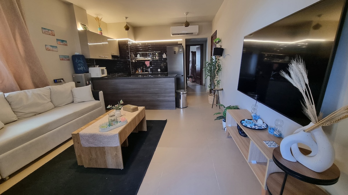 Modern 2-bedroom apartment inside Elite Tulip Hotel, Ain Sokhna. Fully equipped with kitchen, Wi-Fi, A/C, and quiet backside view. Sleeps up to 4 guests. Free access to private sandy beach, swimming pools, and hotel lobby. Paid services: restaurants, laundry, and gym. Ideal place for relaxation by the sea with the comforts of home and the perks of a resort.