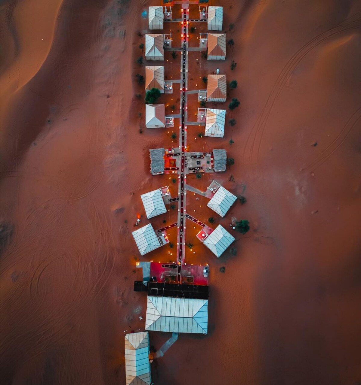 Nuestro campamento, enclavado en medio de las dunas, alberga 10 amplias tiendas de campaña, cada una equipada con inodoros y una ducha privada. Cada tienda tiene una puerta con cerradura individual por dentro y por fuera, con un candado proporcionado de forma gratuita por nuestro servicio. Dentro de estas tiendas de campaña de 26 metros cuadrados, encontrarás una cama tamaño king y una cama individual, todas equipadas con ropa de cama de alta calidad, incluidas almohadas, sábanas y toallas.