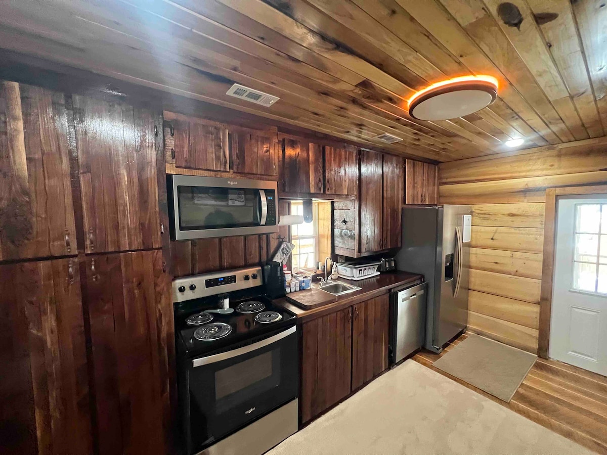 Cabaña/minicasa. Relájate y disfruta de increíbles vistas, 200 acres de senderos, bosques, pastos, granja y campos. HURACÁN HELENE: LOS SENDEROS NO SON COMPLETAMENTE ACCESIBLES AHORA DEBIDO A HELENE. Nuestros senderos y bosques han sido devastados con cientos de árboles hacia abajo. Muchos senderos todavía no están despejados. Nuestro bucle de sendero de cresta superior de 1,5 millas y un sendero de río ahora están abiertos. Los pastos y los campos están en su mayoría despejados y todas las áreas alrededor de la cabaña están completamente despejadas con increíbles vistas de largo alcance de campos y montañas.