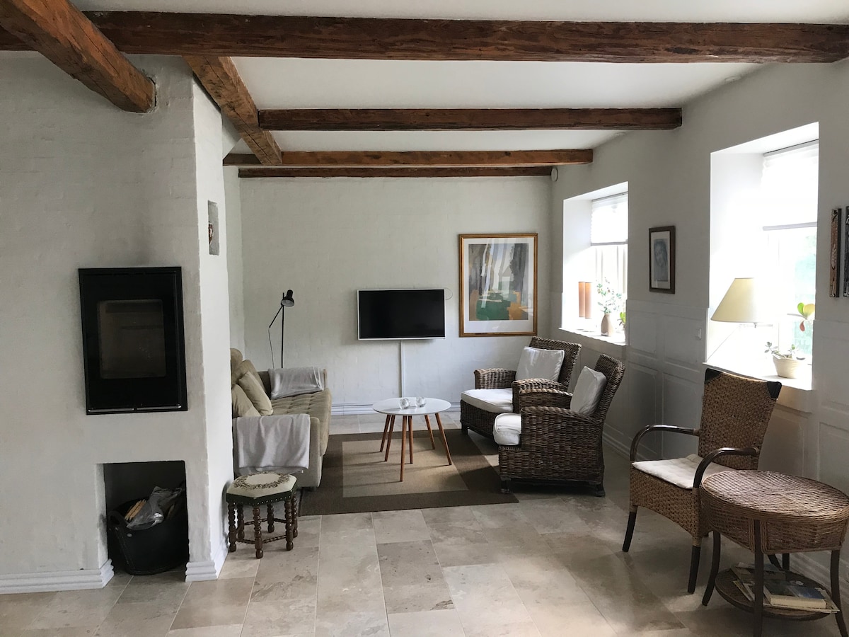 El Atelier es la antigua granja de alrededor de 1830 y tiene un tamaño de 60 m2. Ahora es parte de una antigua granja modernizada situada en el antiguo asentamiento de tierras de páramo de Sjelborg. La casa está situada cerca de la parte norte del mar de Wadden, en la bahía de “Ho”, que tiene una buena playa de baño. La cabaña parece rústica y muchos detalles y características antiguos se han mantenido dando al interior una experiencia muy especial de luz y sombra. Hace algunos años, el Atelier fue utilizado como un estudio por un artista. El mobiliario se mantiene de una manera sencilla y rústica. La cabaña está situada en medio de una gran parcela de 6000 m2 rodeada de un prolífico jardín, naturaleza salvaje y un antiguo huerto. Debajo de la terraza se encuentra un pequeño arroyo de agua fría y fría. Cuando baja el sol sobre la bahía de Ho en un infierno de rojo y naranja, nada es más relajante que sentarse en la terraza con una copa fría de “Viño Verde” profundamente absorbido en el sonido de la naturaleza. Sala de estar: 50 m2, doblada (140x200 cm) protegida por una gran estantería, sofá, 2 sillas y una mesa alrededor de una estufa, televisión, comedor con espacio para 4, 2 armarios dobles, televisión por cable, radio con CD y LAN inalámbrica (WiFi). Toda la casa tiene calefacción por suelo radiante procedente de una calefacción geotérmica. Loft: 2 matrasses, una lámpara de lectura. Cocina: agua fría/caliente, 4 placas de cocina eléctricas, horno combinado, cafetera, hervidor eléctrico, nevera, tostadora, utensilios de cocina, tazas, platos, vasos y cubiertos para 4 personas, limpiador de aspiradoras. Inodoro/baño: agua fría/caliente, inodoro, lavabo, ducha, calefacción por el suelo. Lean: espacio para muebles de jardín, barbacoa, bicicletas, leña, etc. Terraza este y oeste de la casa: muebles de jardín de teca, barbacoa. Actividades: Sjelborg está situado en la parte sur de la gran natureresort "Marbæk". La naturaleza es variada y la historia se remonta a 10.000 años. http://www.visitesbjerg.dk/NR/rdonlyes/7E0AF80-3BE5-4184-B1B5-84994F85A1F9/0Marbabaek_folder_marts08_web.pdf. Aquí emociona la posibilidad de nadar, caminar/correr durante kilómetros a lo largo de la playa o en la plantación que consiste tanto en un antiguo bosque de pinos como de madera dura. Puedes andar en bicicleta o en bicicleta de montaña, orillas a caballo en caballos islandeses, canoa de remo og cayak, barrios de estudio de los asentamientos de bronce y de la Edad del Hierro. Puedes ir a pescar (poner y tomar) o jugar al golf en dos clubes de golf recomendados internacionales (Marbæk Golfklub, Breinholtgård Golfklub). La mayoría de los turistas eligen una excursión de un día al Museo Marítimo que alberga un enorme acuario salino con focas. Cerca del museo están los 4 hombres blancos que protagonizan el mar. Puedes ir a Fanø y tomar el autobús local a Sønderho por la playa. Vale la pena visitar la ciudad más antigua y hermosa de Denmarks, Ribe, y puedes participar en una visita guiada al waddensea y recoger ostras. Puedes obtener muchas experiencias culinay en la zona, especialmente en el restaurante local "Rødhætte", que está a solo 200 metros y desde aquí puedes ver el mar mientras disfrutas de una comida deliciosa.