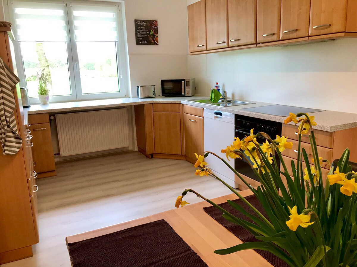 El apartamento de 120 metros cuadrados es la mitad de una casa de campo de 1898 y ha sido renovado. Rodeada de campos, la casa está en una ubicación aislada y es perfecta para disfrutar de la naturaleza y la tranquilidad. Hay un jardín con terraza en el apartamento y también hay una barbacoa disponible bajo petición. Desde la terraza sur se puede ver a través de los campos hasta las cercanas montañas Wiehn.