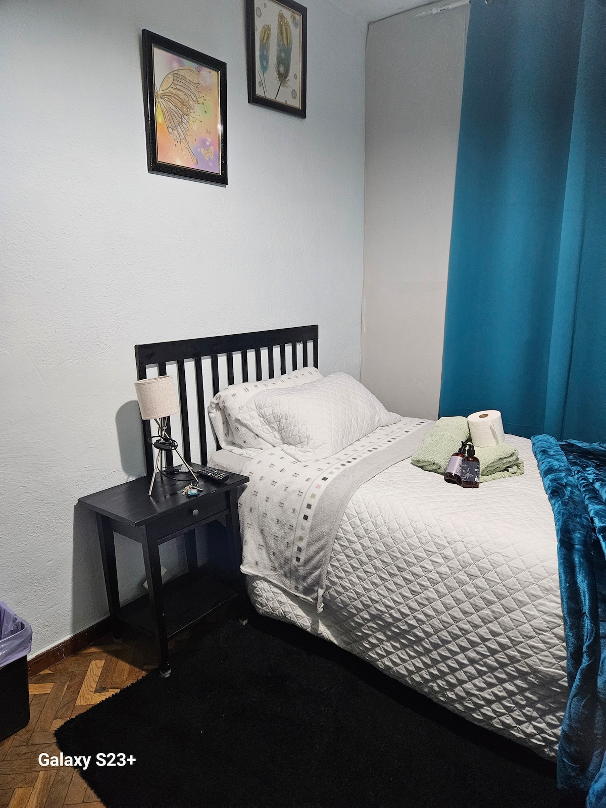 Habitación para mujeres. **IMPORTANTE** La habitación no es compartida pero comunica con otra habitación, por lo que otra persona ( mujer) tiene que pasar por ella para acceder al otro dormitorio. Barrio céntrico, tienes todos los servicios cerca, restaurantes, comercios etc. A solo 100 metros de la parada del metro Quintana, y a 10-15 minutos de la gran via. Si hay WIFI No hay ascensor La habitación no tiene cerradura