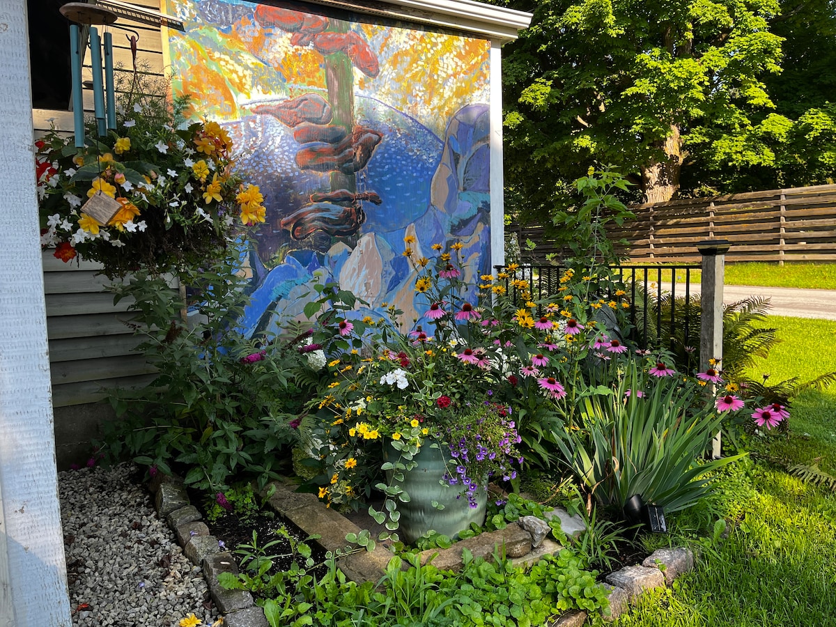Te damos la bienvenida a Fairview Hills Farm. Relájate en el amplio porche cubierto de The Squire's Cottage y observa a los caballos pastar en la ladera. A pocos pasos de la parte trasera de la propiedad se encuentran humedales naturales con una gran cantidad de especies de aves diferentes. El sendero Bruce Trail está cerca con aparcamiento. ¿No te apetece cocinar? Hay una variedad de restaurantes, de alta gama para llevar, cerca o cocina un festín en la cocina totalmente equipada. Por la noche, acomódate con un buen libro frente a la chimenea.