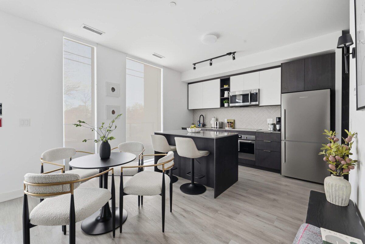Te damos la bienvenida a “Muskoka”, un lujoso refugio inspirado en una casa de campo a solo 10 minutos del aeropuerto de Pearson. Con acabados cálidos de madera y ladrillo, techos elevados de 15 pies y un impresionante árbol de Benjamina de 11 pies, esta escapada de 2 dormitorios y 2 baños combina el encanto rústico con el confort moderno. Disfruta de una amplia cocina, una acogedora sala de estar y un balcón privado con barbacoa y comedor al aire libre. Con una cama tamaño king y una cama tamaño queen, es la escapada perfecta para familias o grupos que buscan una estancia serena cerca de la ciudad.