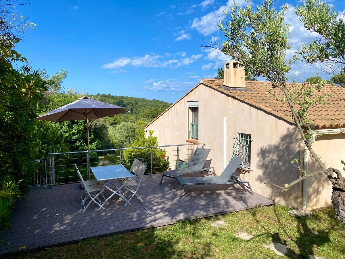 Casa de campo acogedora y confortable con jardín y spa privado, para dos personas (más un bebé) en plena campiña provenzal y a 20 minutos de las playas. El sofá de la sala de estar, que es sofá cama, puede servir de ayuda en casos excepcionales. Suplemento de 20 €. Alojamiento cerca de las playas, de las ciudades costeras, de los pueblos pintorescos y del Circuito de Le Castellet. El spa está en funcionamiento de mayo a octubre. El espacio de estacionamiento se encuentra fuera del jardín, pero en un camino sin salida que nos pertenece.