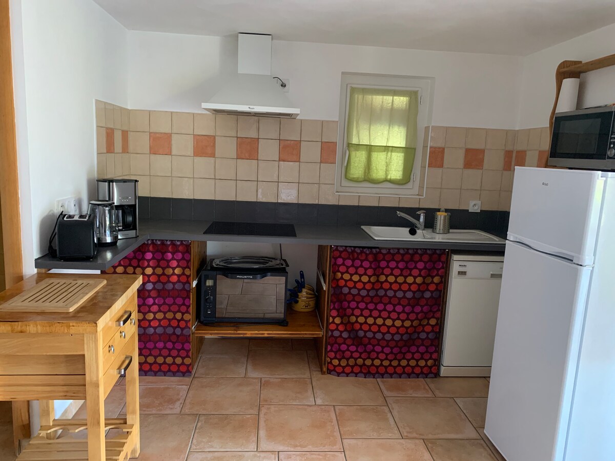 La escapada perfecta en el corazón del Ardeche con impresionantes vistas al valle y a pocos pasos de los populares lugares de baño del pueblo. Situado justo al lado de la gran casa de campo, es ideal para los amantes de la naturaleza a los que les gustan las comodidades de la vida moderna. Tiene su propia entrada, jardín y terraza para comer al aire libre, tomar el sol y contemplar las estrellas. Hay pequeños detalles como un lavavajillas, un tocadiscos de vinilos y equipamiento para los amantes del café. Tu propia plaza de aparcamiento está a 3 minutos a pie.