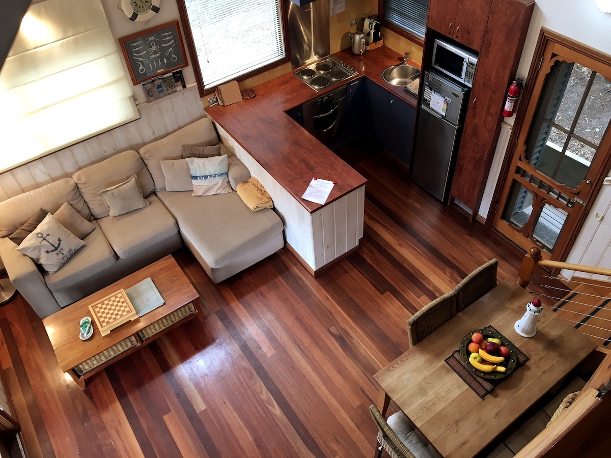 Sunnyside se encuentra justo al lado de la Great Ocean Road, a unos 15 minutos de Apollo Bay. Un estudio loft totalmente privado y autónomo ofrece vistas panorámicas al océano Antártico y se encuentra entre las copas de los árboles de la selva tropical de Otway. La propiedad tiene más de 10 acres para explorar; un olivar, un huerto, un bosque de robles maduros e impresionantes pasarelas que combinan tanto pastos como entornos nativos. ¡Incluso puedes tener la suerte de conocer a nuestro koala residente! Te espera una experiencia única.