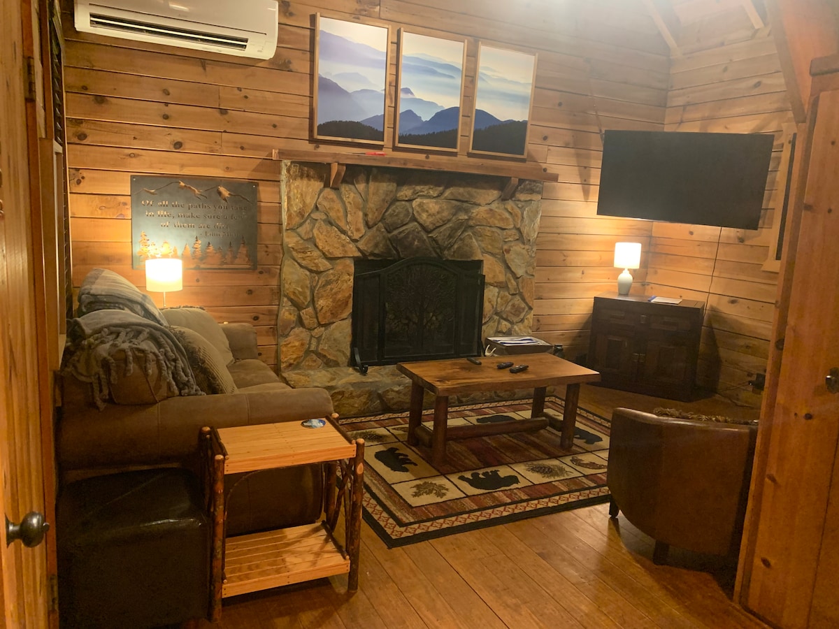 A poca distancia en auto de la ciudad, llegarás a este tranquilo refugio. Sin embargo, cuando te apetezca disfrutar de excelentes restaurantes, bares/cervecerías de moda o tiendas únicas de pueblo pequeño, estarás a solo unos minutos del centro de Blue Ridge. En esta cabaña completamente renovada, disfrutará de total privacidad en el jacuzzi interior, un magnífico porche con mosquitero, cama columpio y televisión, una enorme ducha a ras del suelo, una apacible chimenea exterior, así como una nueva parrilla y una mesa con chimenea. Y si tienes que trabajar antes de salir a caminar, ¡tenemos wifi rápido!