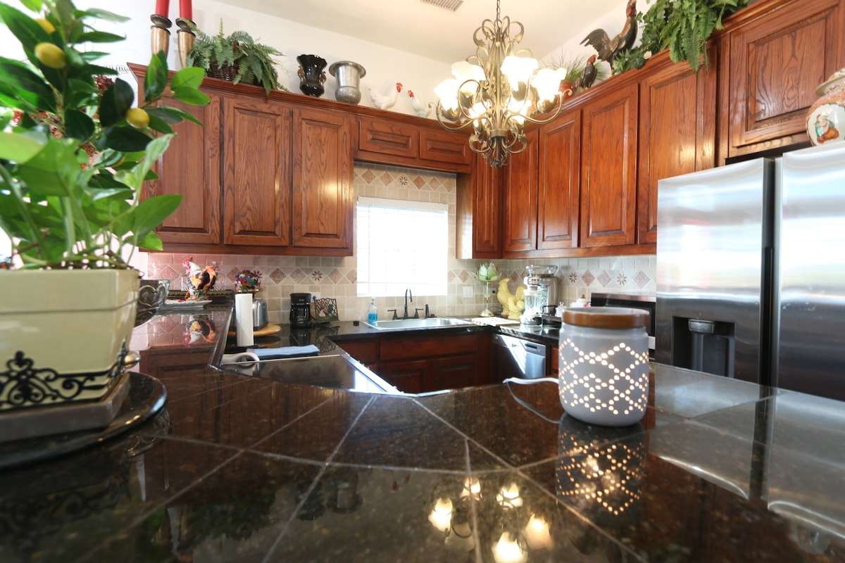 Casa de huéspedes de un dormitorio con entrada privada, cocina, despensa, baño, lavadero y dormitorio que tiene un escritorio, cama tamaño king y armario espacioso. También hay un pack n play y un colchón doble disponibles. Permitimos que los huéspedes disfruten de nuestro porche breezeway que tiene una chimenea al aire libre y una vista al patio trasero boscoso que se extiende por 12 acres. Estamos a cuatro minutos en auto de nuestro pintoresco centro de Van Alstyne, a una hora del aeropuerto DFW y cerca de varios lugares para bodas. ¡EXCELENTE opción para estadías largas!