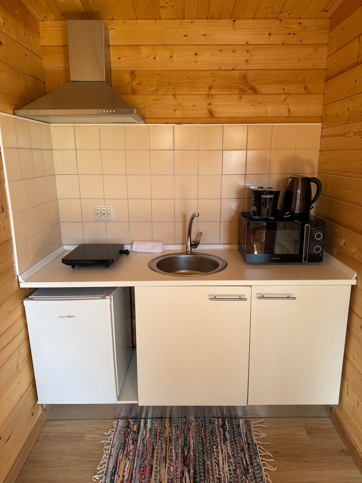 Chalé T0 de madeira a 5min da praia em Lagos O Chalé possui quarto, cozinha, WC, lavatório, cozinha equipada e terraço. Há cama de casal, ar condicionado, televisão, internet, água quente, micro-ondas, frigorífico, placa para cocção, chaleira, cafeteria e outros utensílios. Temos piscina (12m por 6m), barbecue e estacionamento na área externa. Preço anunciado para 2 pessoas. Não aceitamos menores de 12 anos ou animais.