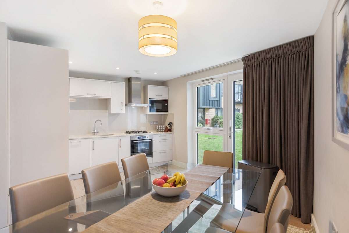 Nuestro hermoso apartamento de dos plantas es amplio, moderno y luminoso. A solo 2 minutos a pie del río y sus cafeterías junto al río. Cuenta con un dormitorio principal grande con baño privado, comedor para hasta 4 personas, cocina y sala de estar con vistas al prado. A 8 minutos a pie del río hasta la estación de Hampton Court (a 19 minutos de Wimbledon, a 35 minutos de Waterloo) y Hampton Court Village en Bridge Road con sus fantásticas tiendas de antigüedades y restaurantes en Bridge Road. El palacio de Hampton Court y el parque Royal Bushy están a 10-15 minutos a pie.