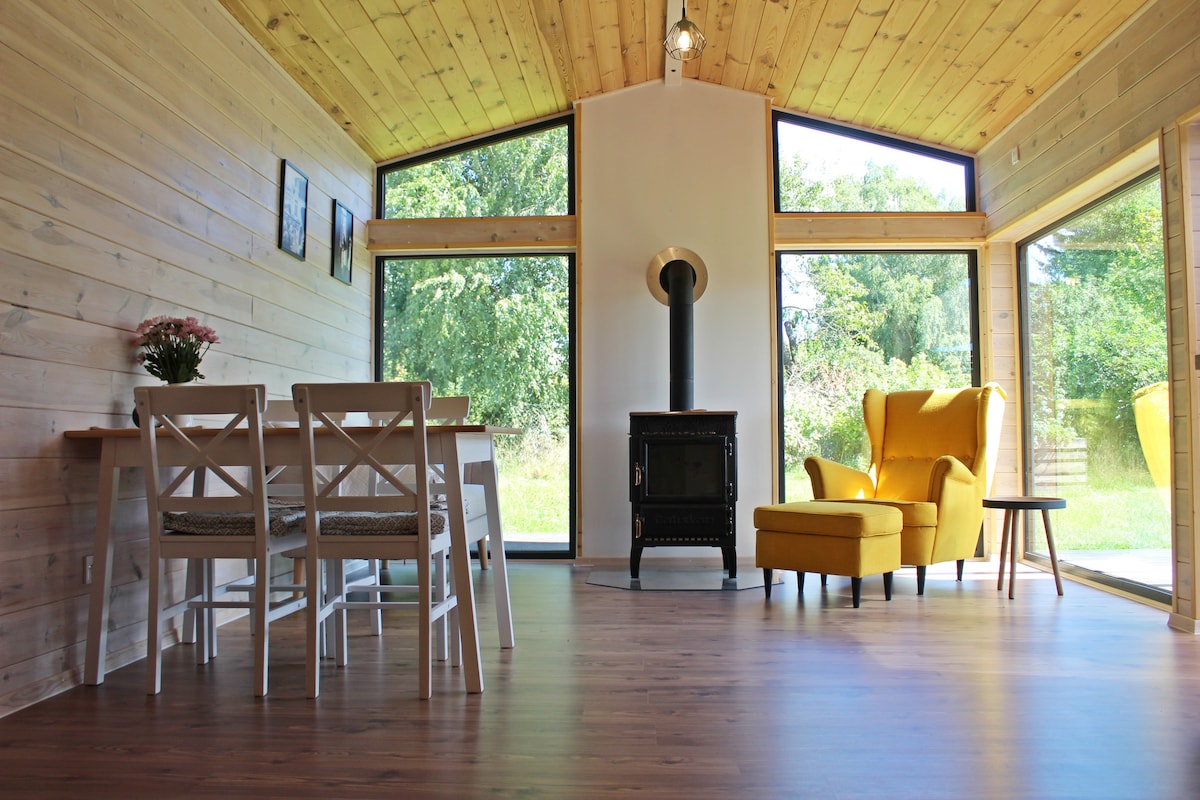 Tiempo libre en el bosque: chimenea, terraza y naturaleza pura