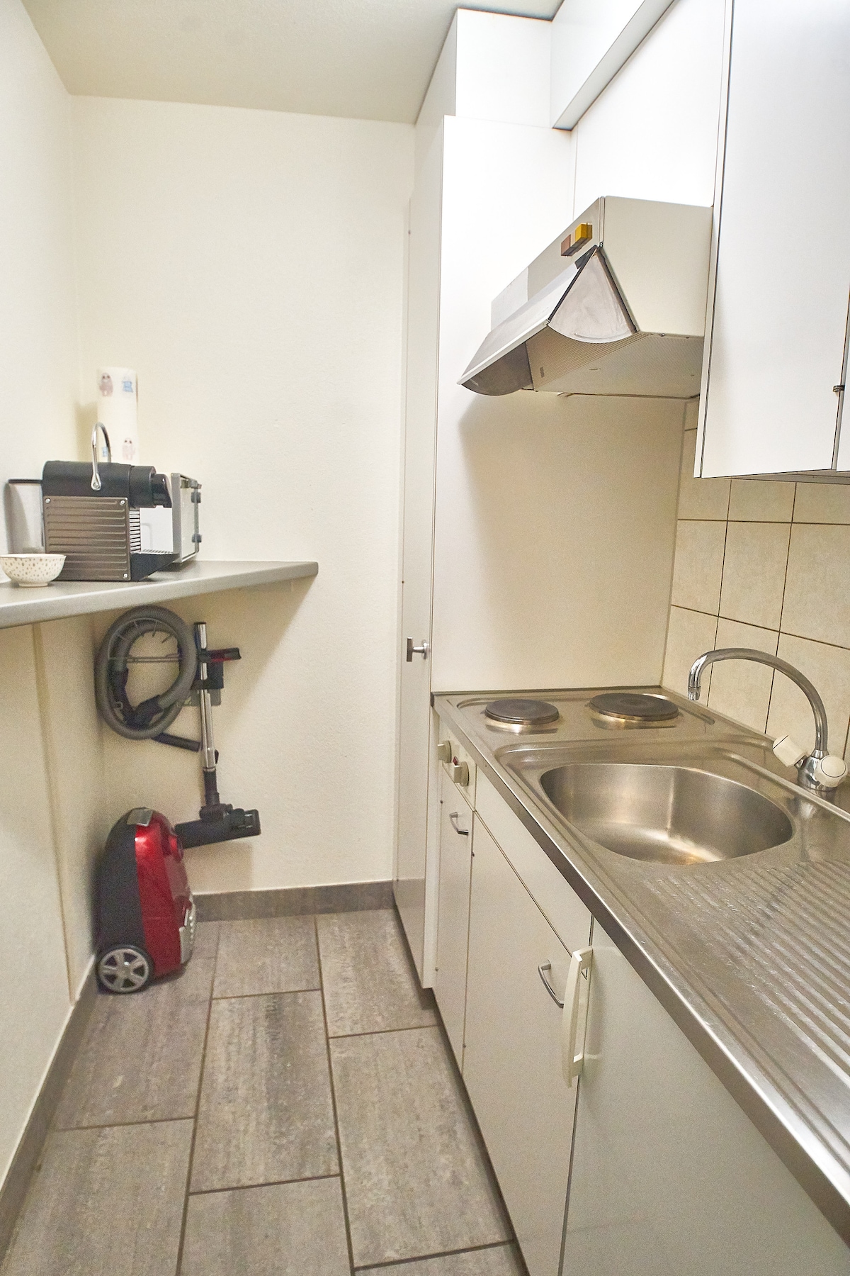 Gran balcón orientado al sur con fantásticas vistas a la montaña y un toldo retráctil. Despiértate y disfruta de las vistas directamente desde la cama grande. Hay luces de lectura disponibles a ambos lados. El estudio (unos 30 m2) también cuenta con sofá cama, TV por cable, altavoz para iPhone/iPad y mesa con cuatro asientos. Pon tu ropa en un armario y/o en perchas junto a la puerta. La cocina tiene fogones eléctricos, horno pequeño, nevera con congelador, cafetera Nespresso, hervidor de agua, raclette y juego de fondue. Un baño con ducha.