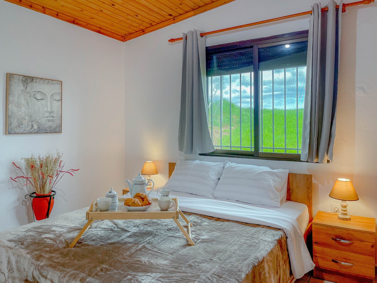 Apartamento moderno y bellamente amueblado en una zona tranquila de Elani, perfecto para parejas. Disfruta de un patio privado con vistas al mar y al Monte Olimpo, además de puestas de sol inolvidables. El apartamento ofrece una cama tamaño king, baño moderno con ducha con efecto de lluvia, acogedora sala de estar con sofá y TV (Netflix y Disney+) e Internet rápido y confiable. La cocina tiene elementos esenciales y una cafetera Nespresso. Rodeado de vegetación y tranquilidad, pero cerca de hermosas playas, el lugar perfecto para relajarse.