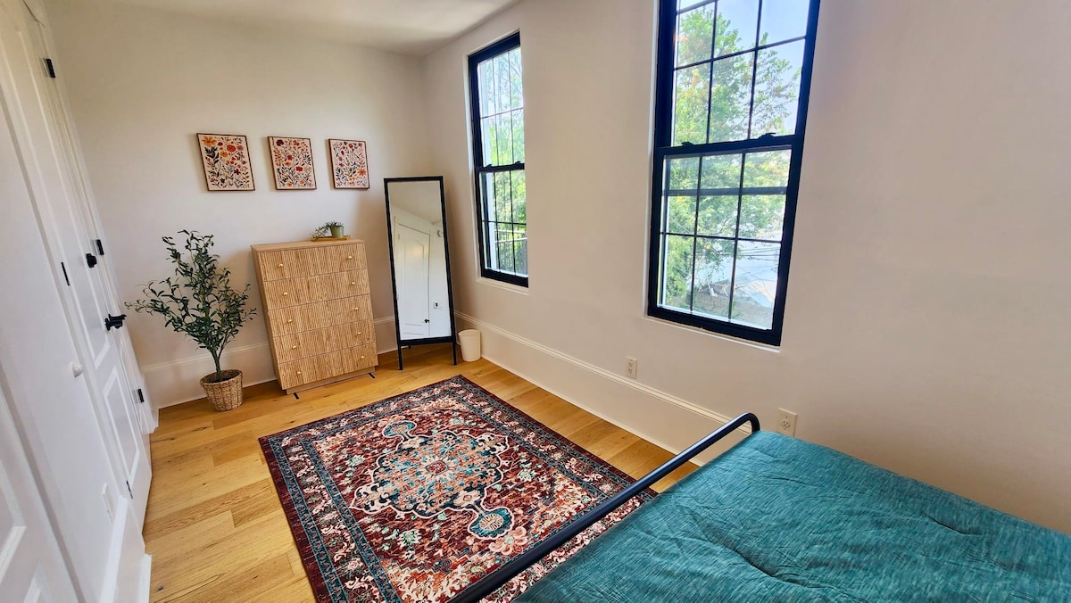 ¡Energía urbana, encanto de piedra rojiza! ¡Te damos la bienvenida a la bulliciosa Journal Square en Jersey City! Renovamos nuestra hermosa casa de piedra rojiza del siglo XIX e instalamos todo nuevo. El espacioso dormitorio principal delantero tiene una cama tamaño queen y una sala de estar; el dormitorio trasero más pequeño tiene una cama de tamaño completo que da a nuestro tranquilo y sereno patio trasero. Como vivimos en la planta baja, estamos encantados de ayudarte a que tu estancia sea lo más agradable posible. Estamos totalmente autorizados PERMISO #: STR-002935-2025
