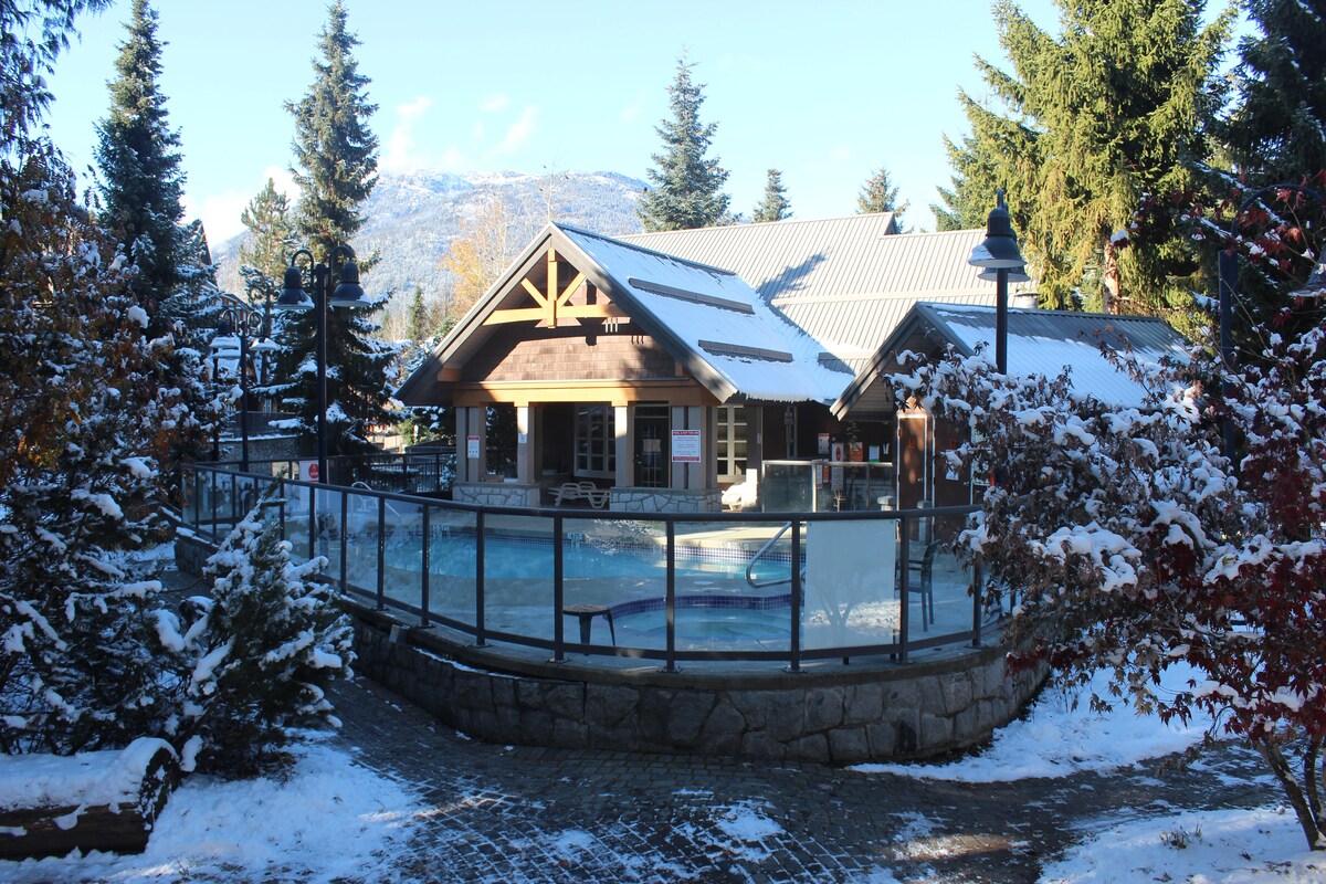 Te damos la bienvenida a tu oasis de montaña. ¡A 1 minuto a pie del ascensor Blackcomb! Nuestro moderno condominio es un dormitorio luminoso y espacioso con ventanas envolventes para unas vistas perfectas a las montañas y a los árboles. ¡Mira hacia arriba la montaña Whistler mientras bebes café desde la mesa de tu cocina! La suite lo tiene todo: - Cama tamaño king - Sofá cama. - Cocina completa con un lavavajillas nuevo - bañera de hidromasaje - Keurig. - Parlante Bose - Aire acondicionado central - actualizado en julio de 2025. El edificio tiene un gimnasio, lavandería, piscina y bañera de hidromasaje al aire libre.