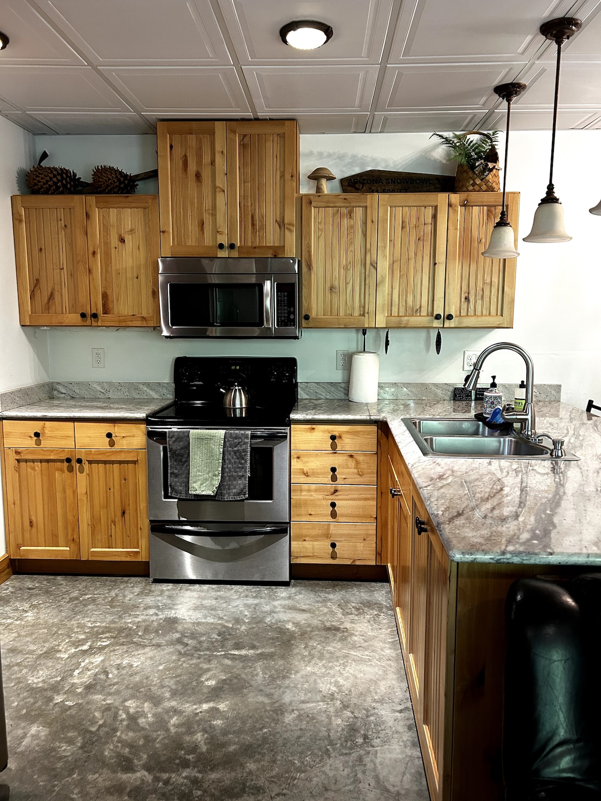 Una suite de invitados de 1000 pies cuadrados en el sótano en Kalispell, Montana; ¡a 40 minutos en coche del Parque Nacional Glacier! ¡Dos grandes ventanas de salida y algunas más pequeñas dejan entrar MUCHA luz natural! El dormitorio tiene un colchón tamaño queen, una cómoda y espacio en el armario. El área común cuenta con un futón de colchón de muelles de tamaño completo, un sofá cama plegable de tamaño completo y un colchón de aire para usar según sea necesario. La cocina es amplia y abierta. Por último, ¡la ducha es una joya oculta! ¡Ideal para una familia soltera o amigos cercanos!