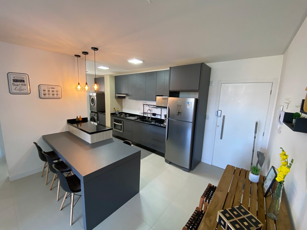 Bienvenido a nuestro lujoso apartamento de dos dormitorios, uno de ellos en suite, con impresionantes vistas a la ciudad y al mar. Moderno, con electrodomésticos completos, cocina equipada, aire acondicionado y lavadora. Decoración sofisticada y cálida. Ubicación céntrica, cerca del Pátio Milano, con acceso exclusivo a la piscina, gimnasio, sauna. Ya sea por descanso, placer o negocios, nuestro apartamento en Florianópolis ofrece una estancia inolvidable. ¡Siéntete como en casa en tu hogar temporal!