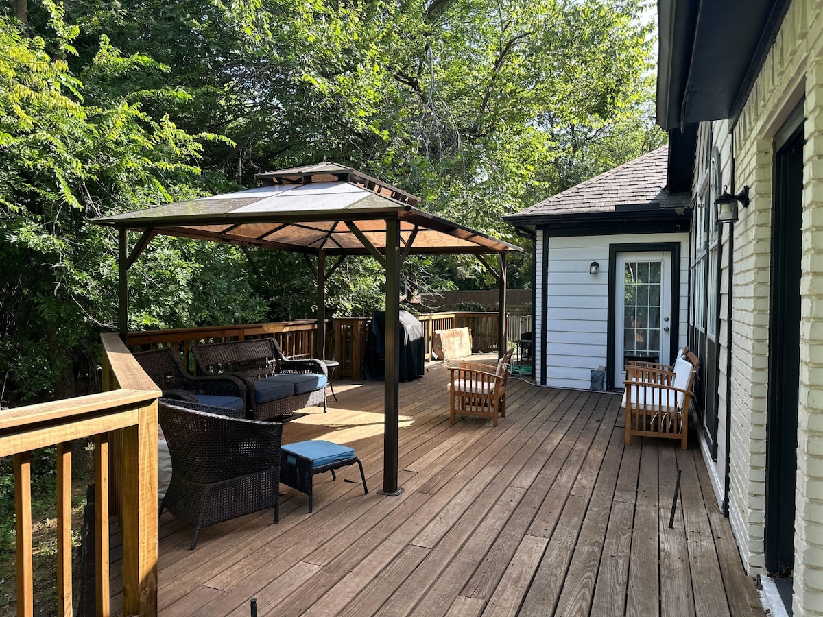 Relájate y recarga energías en esta casa céntrica de Denton. A poca distancia a pie de todas las tiendas y restaurantes que ofrece la histórica plaza del centro, así como de la Universidad del Norte de Texas y la Universidad de Mujeres de Texas, nuestro alojamiento es luminoso y tranquilo, con dos dormitorios separados, un baño completo con bañera y ducha, una sala de juegos, cocina completa, lavadero, patio trasero con chimenea y el porche delantero típico de Denton para sentarse y ver el mundo pasar.