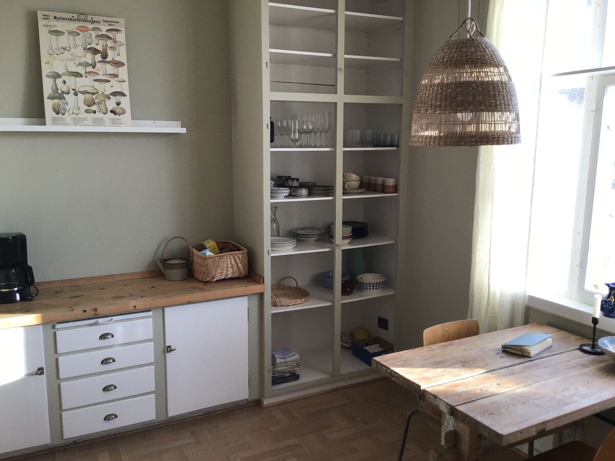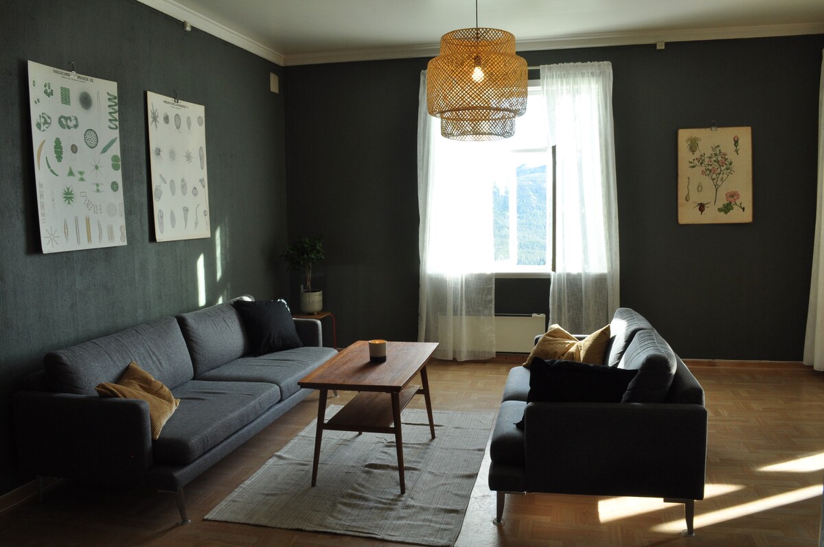 Acogedora casa de campo antigua en una gran parcela vallada junto con anexo, establo y taller con estudio. Una vista que vale la pena... Renovada a partir de 2015, pero sigue siendo acogedora, con muchos de los suelos y superficies originales conservados. Cocina para cocinar y desmayar a toda la familia y huéspedes (+12 personas). Wifi de 150/150 Mbps, Apple TV. Espacio adicional en alquiler: * Stabbur <40 m2, amueblado en estilo nuevo-viejo * Estudio independiente/habitación adicional con cama de matrimonio. ¡Nota! El precio del alquiler se ha ajustado de acuerdo con los altos precios de la electricidad.