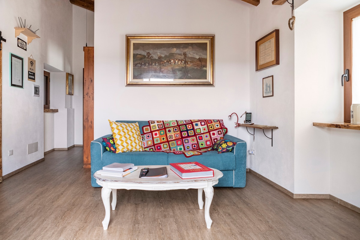 Antigua casa de Todd Thomas Brown, un artista estadounidense que llegó a Fontecchio en 2019 para lanzar la iniciativa de repoblación de artistas, ahora conocida como «El Aeropuerto Internacional de Fontecchio». Airbnb a tiempo parcial, residencia de artistas a tiempo parcial, aquí hay un apartamento diseñado con amorosa atención al detalle, iluminación, muebles seleccionados, adornado con obras de arte originales y con techos abovedados en todas partes. Además, un balcón y un patio interior. ¿Más información sobre nuestro pueblo? ¡Busca en la web «Artistas en Fontecchio»!