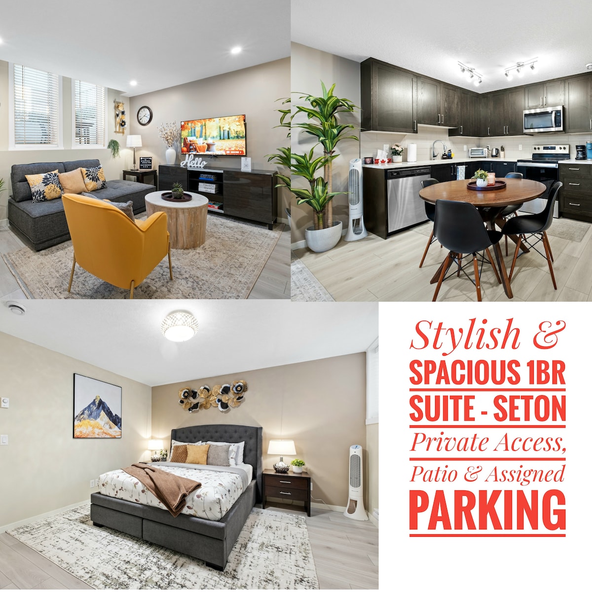 Elegante y espacioso 1 BR Seton | Patio y estacionamiento
