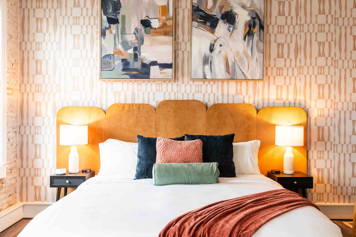Lo industrial se une a lo moderno de mediados de siglo. Esta encantadora estancia cuenta con ladrillo visto con un ambiente moderno de mediados de siglo y todas las comodidades para que tu estancia sea única. Con una ubicación céntrica en Depot Town, encima de la legendaria Thompson & Co Tap Room y a tiro de piedra de algunos de los restaurantes y cafeterías mejor valorados de Míchigan. Dos dormitorios con colchones tamaño king en cada uno para que estés bien descansado y listo para empezar el día. ¡Perfecto para una escapada corta o una estancia prolongada!