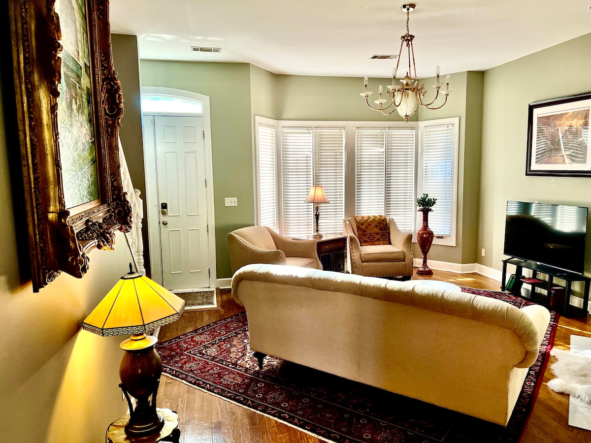 El "Silk-n-art" se refiere a mi colección de tapices de seda y obras de arte. Este gran departamento grande de 2 pisos se encuentra en la mejor parte del distrito histórico, más tranquilo, más suave y más gentil como las mansiones cercanas. Además de 2 dormitorios tamaño king, cada uno con baños privados, hay una habitación flexible privada con un sofá cama extraíble en la planta baja que se puede utilizar como oficina o dormitorio. También hay un sofá en el LR. Más información en "El espacio". SVR-02556