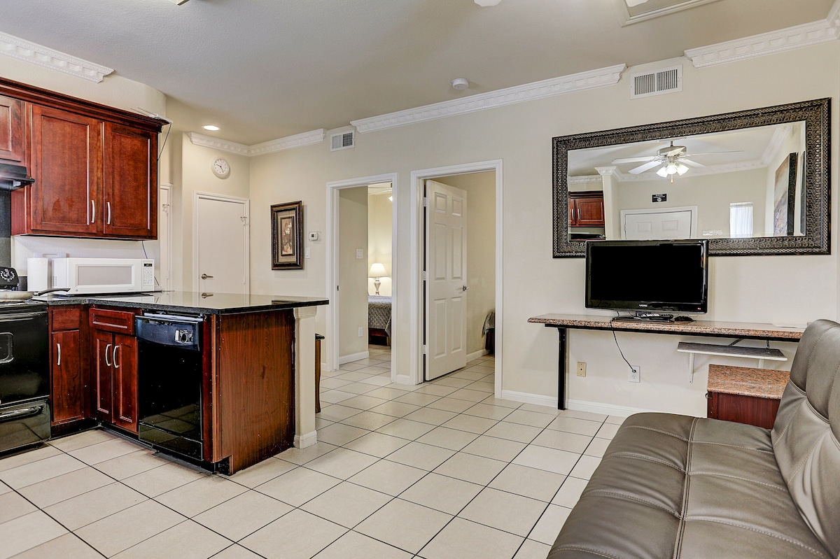 Relájate en este moderno apartamento de 1 dormitorio/1 baño en una comunidad cerrada en el corazón de Katy. Disfruta de una estancia tranquila con purificación de aire con luz UV-C en las zonas comunes y protocolos de limpieza mejorados. Convenientemente ubicado junto a la I-10 y la TX-99, estás a pocos minutos de Katy Asian Town, Cinemark, tiendas outlet prémium, restaurantes, tiendas y mucho más. Camina hasta los elementos esenciales diarios o explora las atracciones cercanas como el Energy Corridor y el Texas Medical Center-West. ¡Perfecto para personas que viajan solas, parejas o huéspedes de negocios!