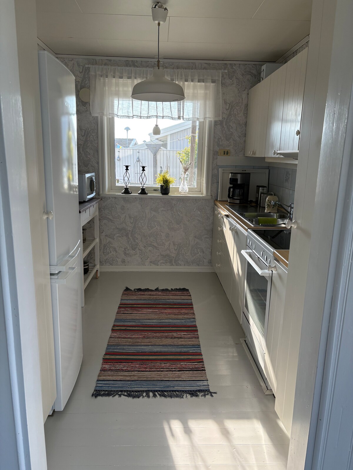 Pequeña cabaña con cocina totalmente equipada y sofá cama para dos. La cabaña tiene un patio con instalaciones de barbacoa y muebles de exterior. También tenemos bicicletas para pedir prestadas. La cabaña está a tres minutos a pie de la tienda de comestibles más cercana (Hemköp). Si caminas unos metros, terminas en el puerto de Klåva, donde hay tiendas y una buena selección de restaurantes y cafeterías. La casa está ubicada a 3 minutos en bicicleta de una playa donde hay un muelle, playa y acantilados. Hönö ofrece varias hermosas zonas de baño alrededor de toda la isla.