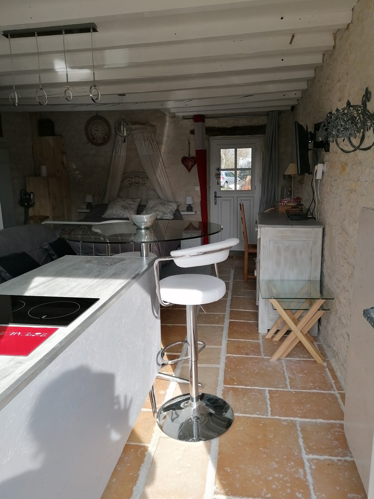 Nuestra espaciosa casa puede alojar a familiares, amigos o viajeros de negocios, en un entorno agradable que combina el encanto de lo antiguo y la comodidad moderna. Disfrutará de una cocina totalmente equipada para preparar sus comidas y de una acogedora sala de estar-comedor, perfecta para reunirse y compartir buenos momentos. Dos cómodas habitaciones le garantizan noches de descanso. Se proporcionan sábanas y toallas para que pueda viajar ligero.