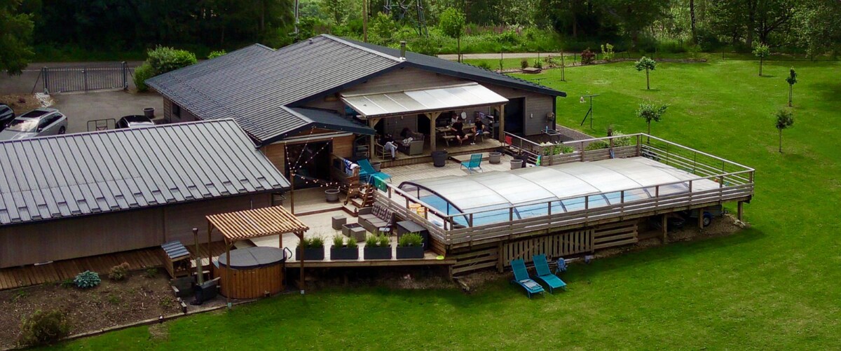Chalet de lujo, piscina climatizada, spa y sauna.
