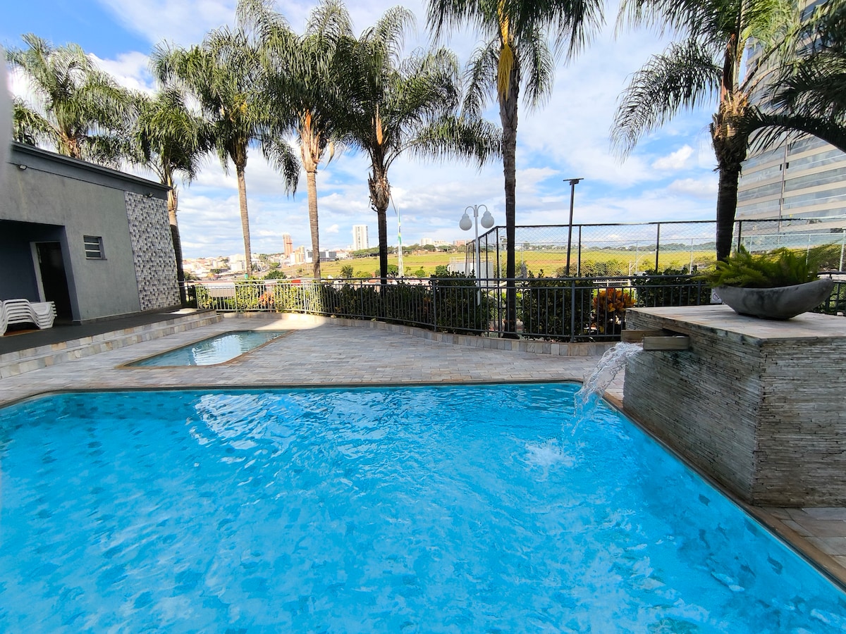 Quédate cómodamente, de forma segura y práctica en un apartamento moderno y acogedor en Franca/SP. Ubicado en una comunidad cerrada, con conserje las 24 horas y una calle tranquila, es ideal para aquellos que buscan descanso. Tiene 2 dormitorios, una sala de estar con TV, un comedor, una cocina completa, un baño moderno y conexión Wi-Fi rápida. Ubicación privilegiada, cerca de supermercados, tiendas, restaurantes y con fácil acceso al centro y a las autopistas. Ideal para familias, parejas, amigos o viajes de negocios.