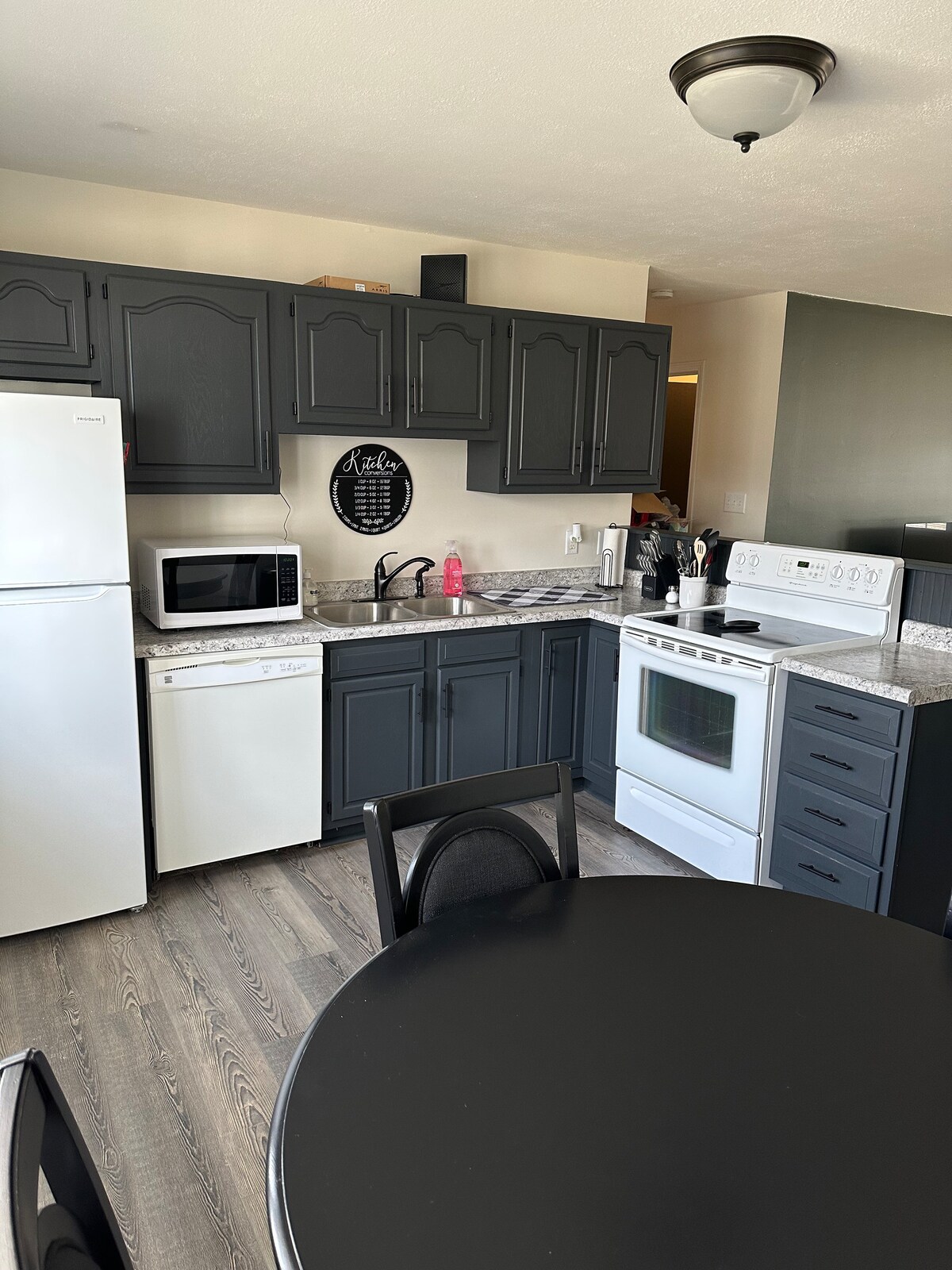 Tu hogar lejos de casa de vuelta a casa. Estarás justo al final de la calle de tus padres, el partido de fútbol, tu puesto de ciervos del tío y a pocos minutos de Dixie Cream Donuts para un poco de nostalgia rápida. Dos camas completas, un baño con ducha a ras de suelo y grandes ventanas en la sala de estar para que puedas contemplar las calles en las que creciste mientras tomas el café por la mañana. A la abuela Sharon le encantaba tener compañía y a nosotros también nos alegra tenerte.