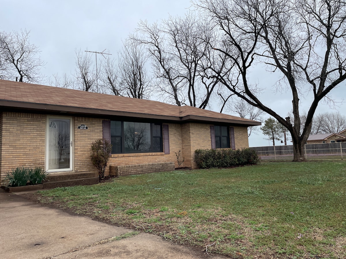 Enjoy a peaceful stay at my three bedroom home in the quiet town of Tipton. The home is equipped with WiFi, coffee maker, full kitchen, tv in every bedroom and living room, sleeper sofa and 4 queen size beds to make your stay comfortable. You can relax outside and use our patio and grill. 20 minutes to Altus (Altus Air Force base) 15 minutes to Frederick lake (great fishing!) 15 minutes to Frederick 45 minutes to the Wildlife refuge and Medicine Park We look forward to hosting you!