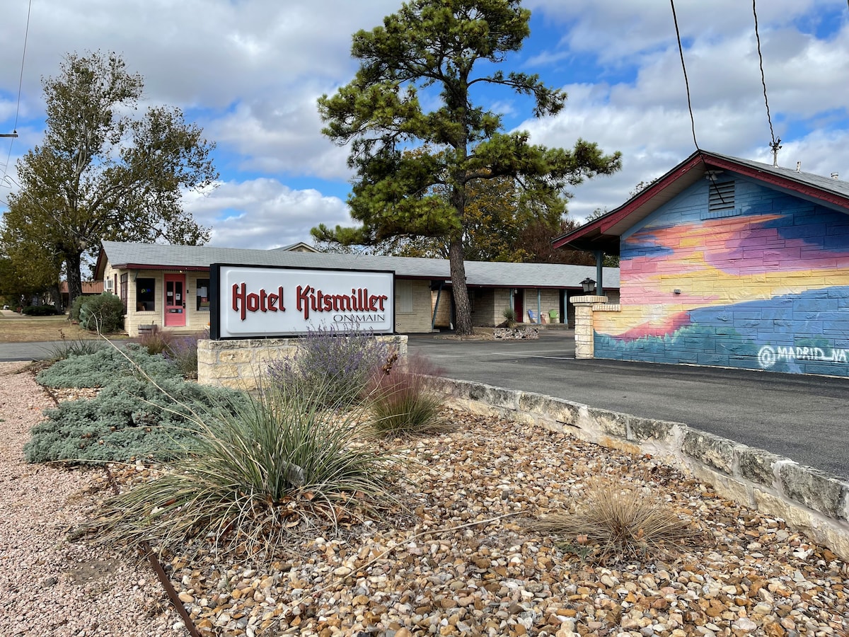 Retrocede en el tiempo en este punto de referencia de Fredericksburg. Construido en la década de 1930, el Hotel Kitsmiller en Main ha estado en el pasado histórico de Fredericksburg. Originalmente una pista de carreras, es un retroceso a los días de antaño y un tiempo más simple.