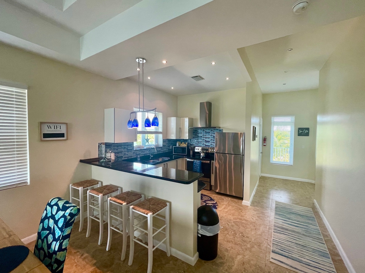 Descubre la combinación perfecta de comodidad y vida ecológica en este apartamento de 1 dormitorio y 1 baño recién construido, ¡a solo 1 milla de la playa! Ubicado en un barrio tranquilo y en desarrollo, The Eco Lounge ofrece un refugio moderno y acogedor para parejas, viajeros solos o familias pequeñas que buscan relajarse y recargar energías. Proximidad a la naturaleza: disfruta de las playas de arena o explora una increíble granja familiar a menos de 10 minutos, donde puedes comprar productos locales frescos e incluso disfrutar de un recorrido por la granja con descuento.