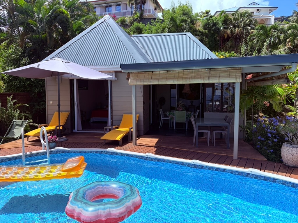 Acogedor bungalow con una vista de ensueño del océano y Moorea. Un entorno relajante ideal para estadías en familia con amigos o románticas. Relájate en las tumbonas, en la piscina. Disfrute de los espectaculares amaneceres o puestas de sol, observe el cielo increíblemente estrellado. El bungalow está construido en nuestro jardín, sin vecinos con nuestra casa. La propiedad se encuentra en las alturas de Punaauia en una residencia tranquila y segura. Es necesario alquilar un vehículo.