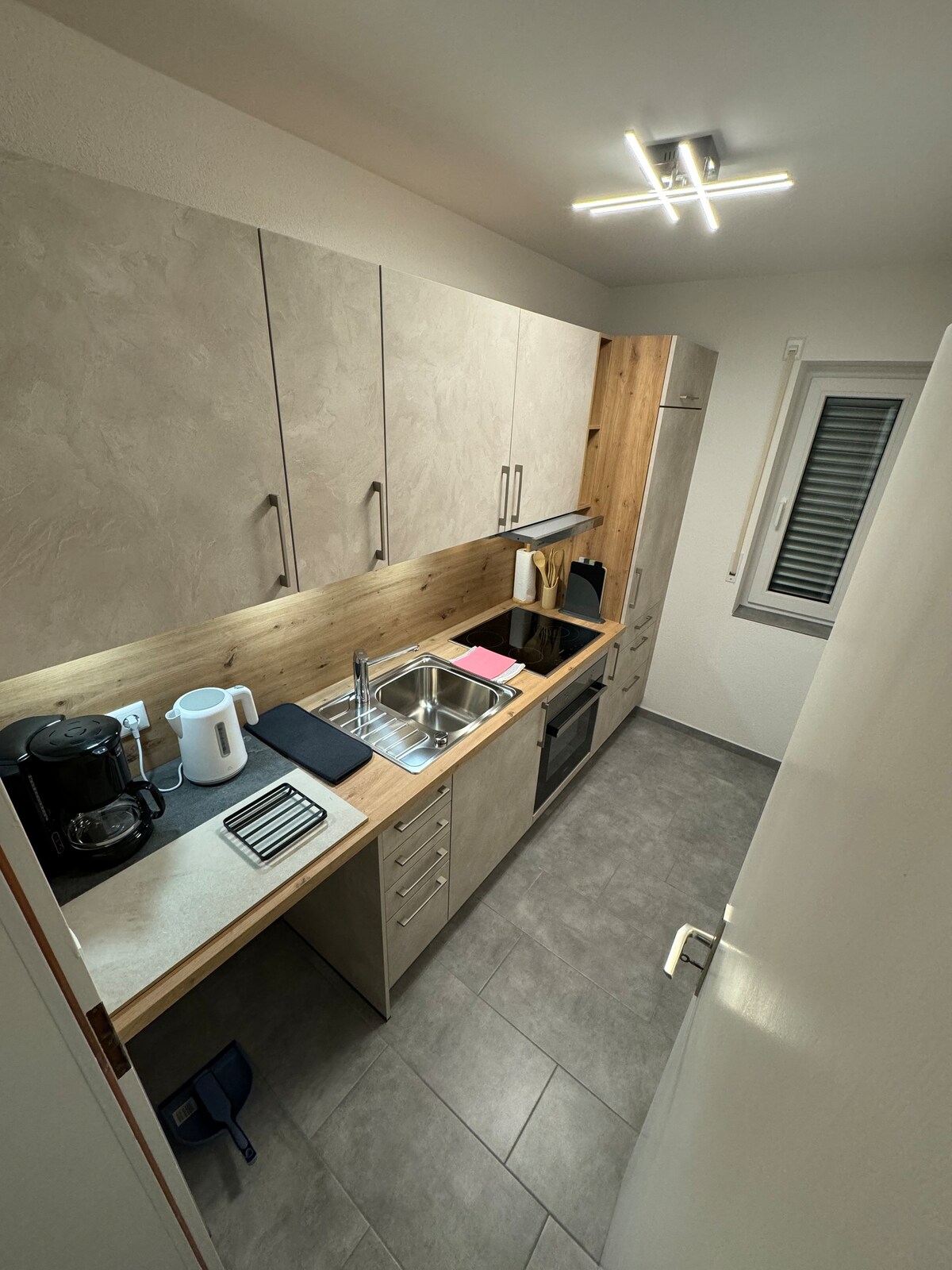 Disfruta de una estancia inolvidable en nuestro acogedor y moderno estudio en una tranquila zona residencial. Las características incluyen dos camas individuales (90x200), mesa de comedor, TV 4K, cocina con encimera, horno, microondas, lavavajillas, nevera/congelador, cafetera, tostadora, hervidor, combo de lavadora-secadora y aspiradora. Baño con ducha, inodoro y lavabo. Wi-Fi de alta velocidad gratuito y espacio de estacionamiento privado frente a la casa.