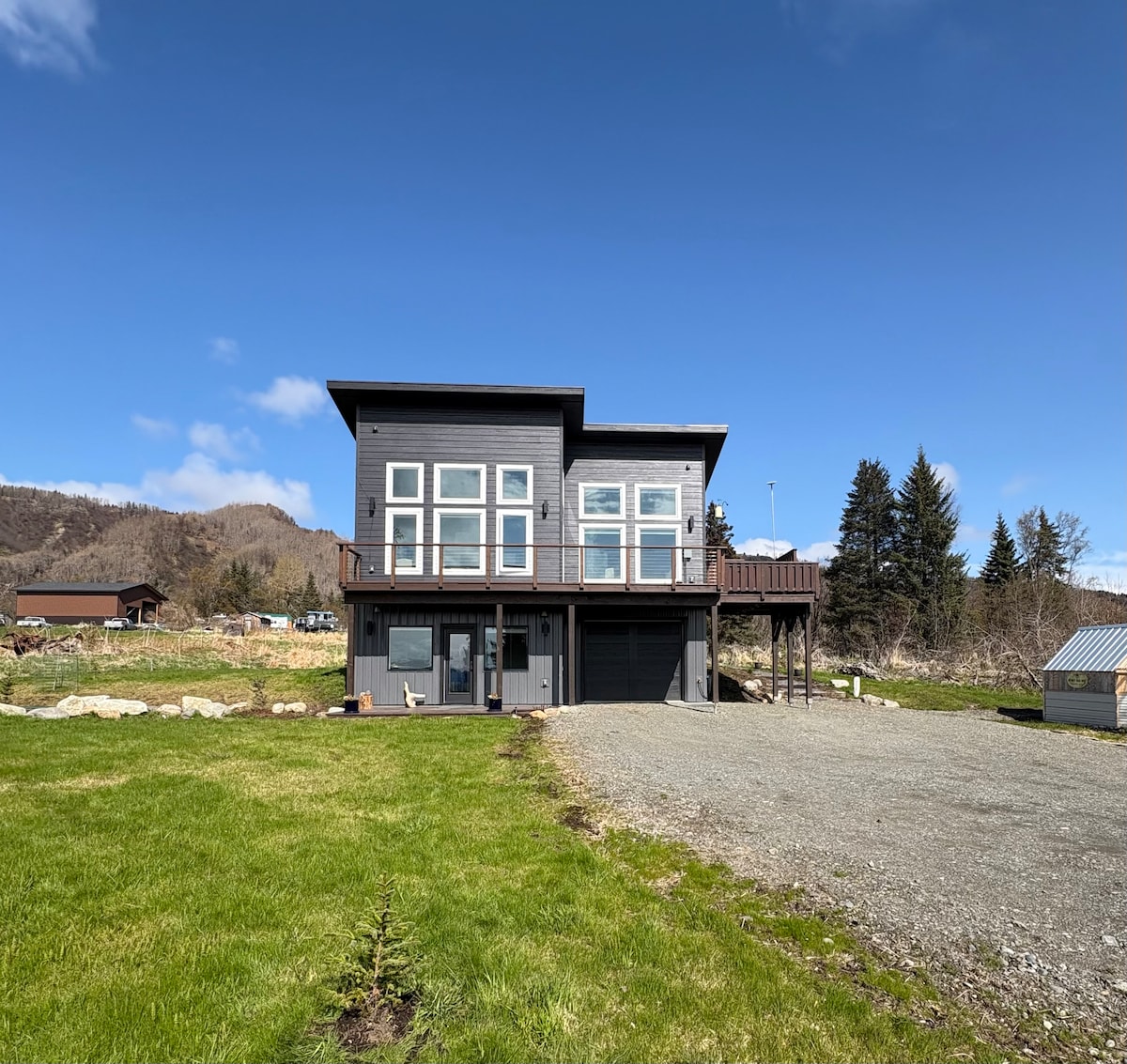 ¡Disfruta de un hermoso lago y vistas a la montaña en un estilo moderno! Relájate en nuestro lujoso baño tipo spa con bañera de inmersión, dos cabezales de ducha y suelos radiantes, y disfruta cocinando en nuestra exclusiva cocina retro. A solo 2,5 millas del famoso Homer Spit y a minutos de todos los servicios, galerías, cervecerías, chárters, pista de hockey y el aeropuerto.