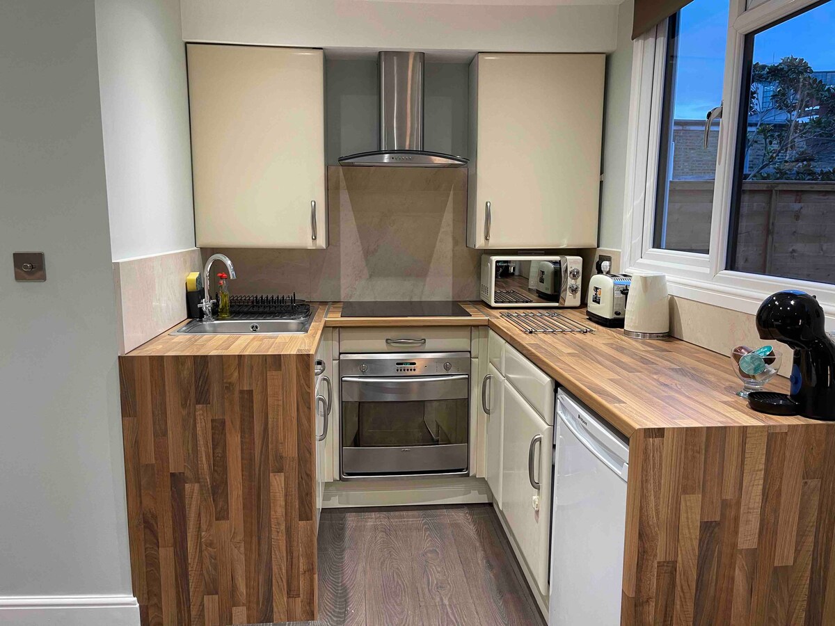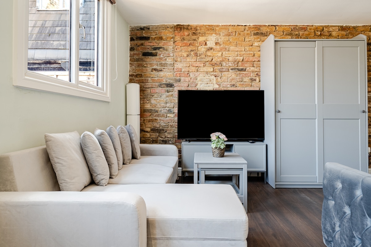 Comienza el día con una taza de té en la terraza de la azotea bañada por el sol antes de regresar a una cocina blanca reluciente para preparar el desayuno. Un cómodo sofá ofrece un lugar encantador para leer un libro dentro de este apartamento en un encantador edificio georgiano. Este apartamento en la planta superior recién reformado está situado en el centro, a pocos minutos del metro de Fulham Broadway, lo que te ofrece un acceso versátil a todo el centro de Londres. Una sala de recepción luminosa y espaciosa cuenta con una cocina a estrenar con vitrocerámica de convección, horno, nevera, microondas y cafetera Nespresso. La cocina/sala de estar de planta abierta cuenta con una zona de estar con banco a medida. La recepción cuenta con puertos USB para cargar tu teléfono (por favor, trae el cable de tu teléfono) y una televisión recién instalada con Netflix. Las salas de recepción se abren a una terraza orientada al suroeste con vistas a árboles maduros que conducen al parque. Un lugar perfecto para disfrutar de un café por la mañana o una copa al atardecer, lo que te permitirá empaparte del animado ambiente. Hay wifi gratuito disponible. La suite del dormitorio cuenta con armarios empotrados a medida con perchas y un nuevo baño con ducha con efecto de lluvia y buena iluminación. Te ofrecemos un juego de ropa de cama fresca para tu estancia, café Nespresso, té, leche, dulces y un manual a medida para guiarte a los restaurantes y necesidades locales. Ya sea que tu estancia en Londres sea por negocios, turismo, compras o simplemente por placer, esta es una ubicación céntrica ideal en Londres. En la parte trasera del edificio hay acceso a cafeterías/restaurantes y un encantador parque, con Boris Bikes disponibles para alquilar si te apetece hacer un recorrido. 07703004354 - ¡Estoy disponible prácticamente las 24 horas del día, los 7 días de la semana! Hay una parada de autobús justo al lado del apartamento con rutas que ofrecen viajes cortos a atracciones populares de Londres. Los apartamentos de Harwood Road están idealmente situados muy cerca de Fulham Broadway, lo que te da acceso a todo el centro de Londres a través de la red de metro y múltiples servicios de autobús. La zona tiene un ambiente bullicioso y una gran colección de restaurantes y tiendas que ofrecen una amplia variedad de cocina, desde francesa (Cote Brasserie) hasta tailandesa (9,95 £ por un almuerzo de dos platos frente a los apartamentos), pasando por Byron Burger y un Oyster Bar. Hay un gimnasio, cine y un hermoso parque (con canchas de tenis), ¡todo a tiro de piedra!