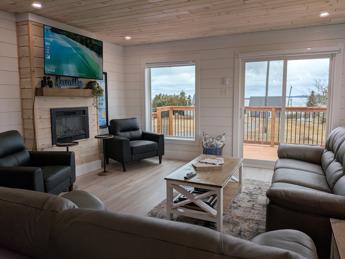Ven a disfrutar de una escapada tranquila en nuestra espaciosa y moderna casa de campo con vista al mar. A pocos pasos de una hermosa playa de arena para explorar la bahía de Fundy y sus tesoros dejados durante la marea baja. Viene totalmente equipado con comodidades modernas y chimenea eléctrica para esas frías noches en el océano. Barbacoa de tamaño completo y terraza privada. Cuarto de lavado. Televisores inteligentes de pantalla grande en cada dormitorio y sala de estar con sofá de tamaño completo. WIFI A minutos de la hermosa New River Beach.